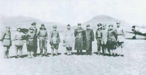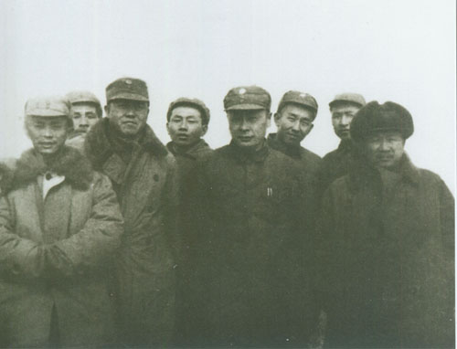42.张云逸1946.1在枣庄机场欢迎军调处徐州执行小组成员。左三为张云逸,左六为陈毅。