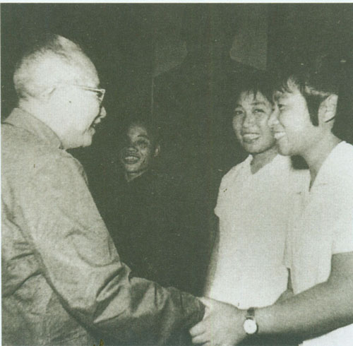 55.张云逸1964.7与出席全国共青团“九大”的民兵代表亲切握手