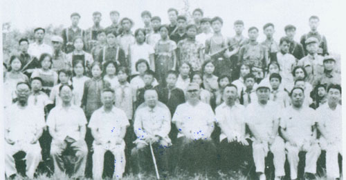 56.张云逸1964年同参加军事比武的民兵们合影。前排左四为张云逸。