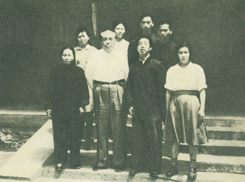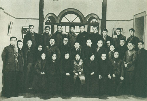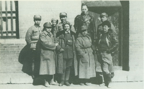 23.彭德怀1937.12陪同朱德在山西洪洞县八路军总部会见美国记者露丝等人。前排左起:康克清、露丝、丁玲。后排左一左权,左三朱德,左五彭德怀。