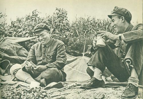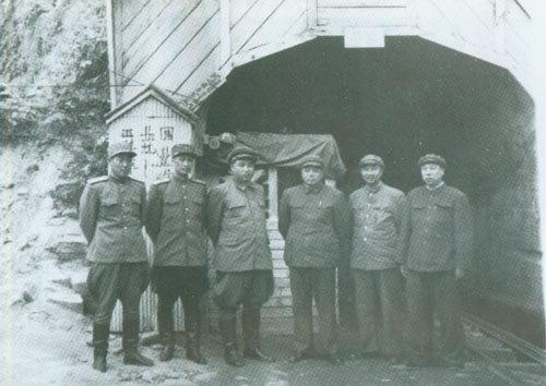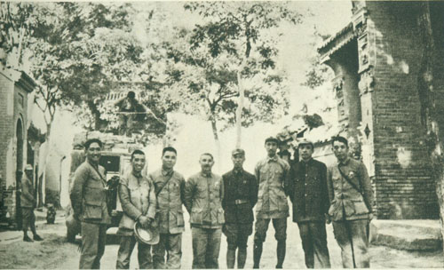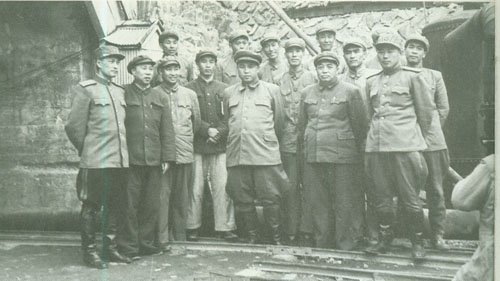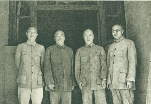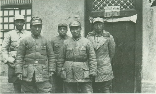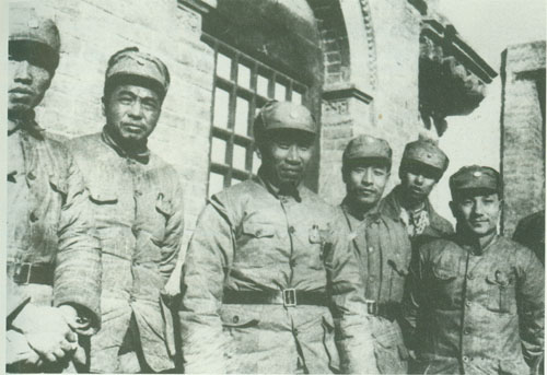 42.彭德怀1938年在山西武乡县王家峪八路军总部合影。右起:邓小平、萧克、彭雪枫、朱德、彭德怀。