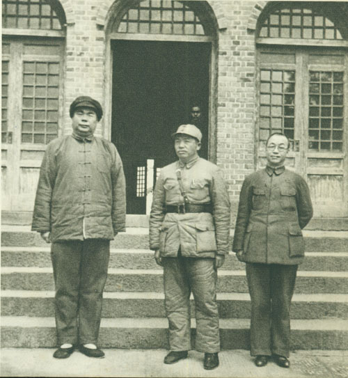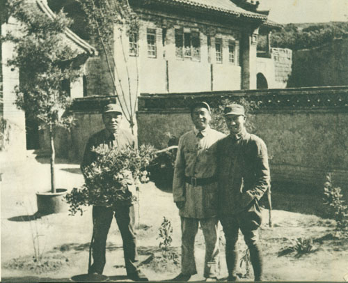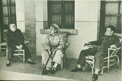 39.彭德怀1938年在山西洪洞县马牧村。左起:陆定一、彭德怀、朱德。