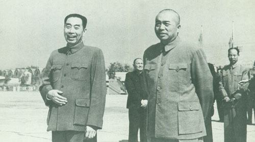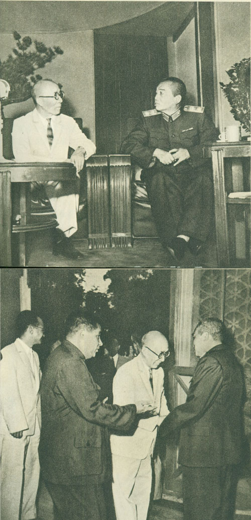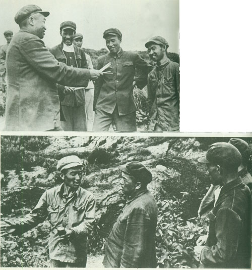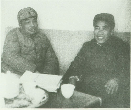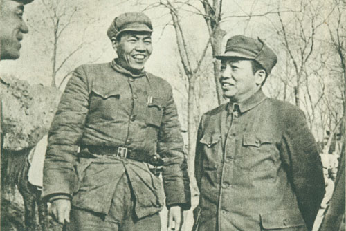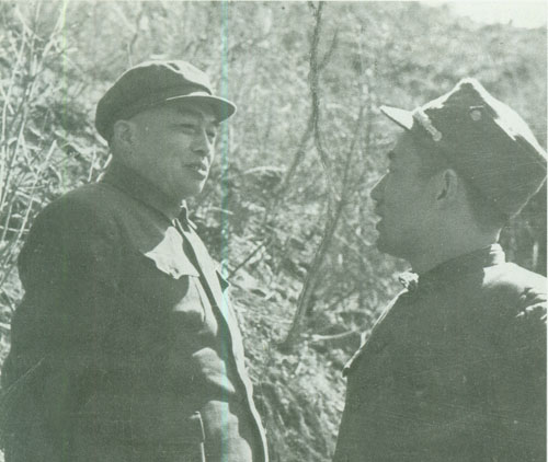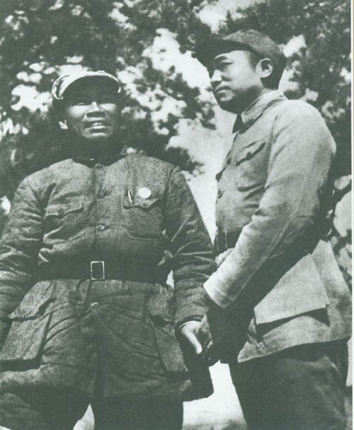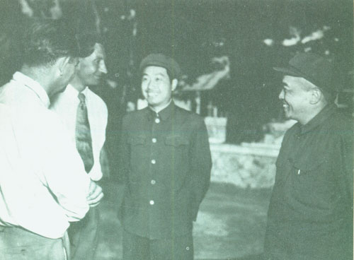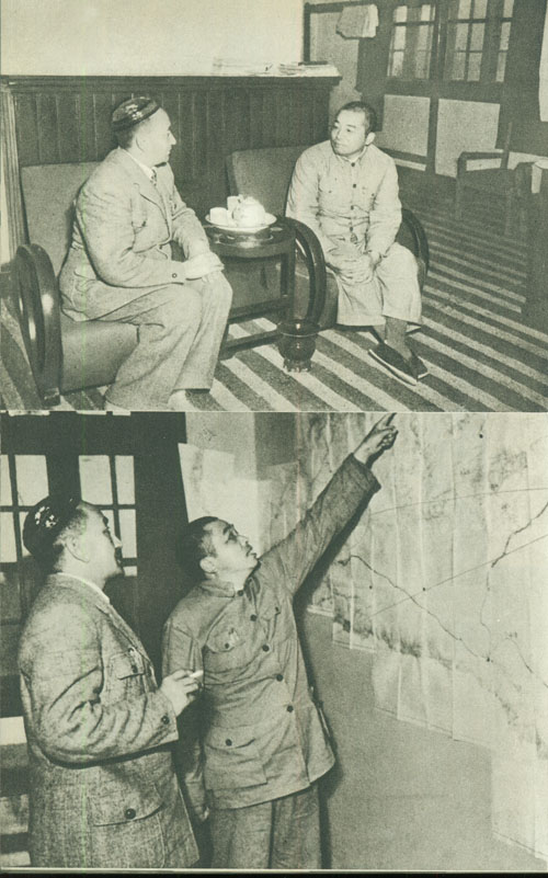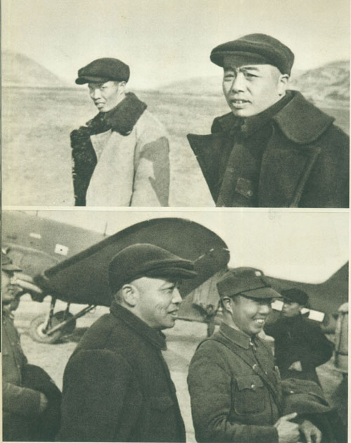73.彭德怀1944年在延安机场。上图左为黄华。