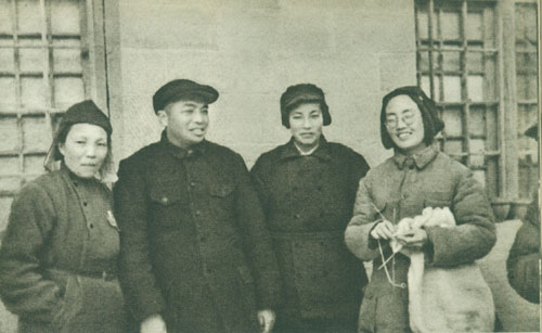 71.彭德怀1944年元旦在延安杨家岭窑洞前。左起:蔡畅、彭德怀、浦安修、刘志兰。