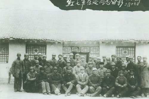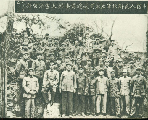 76.彭德怀1945.3.17与原红七军指战员在延安合影。中右四朱德、中右五彭德怀、中右三陈毅。