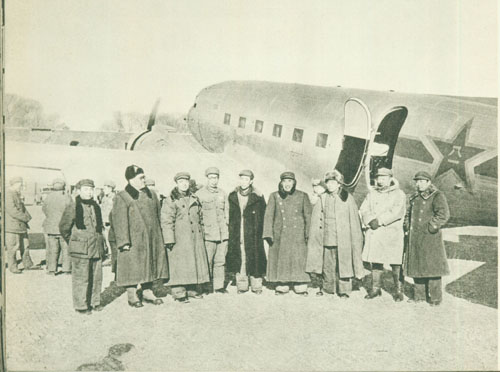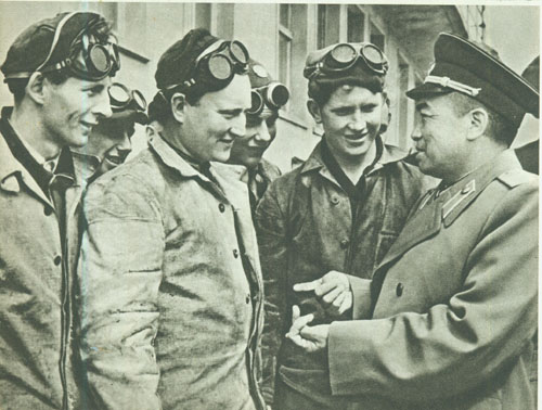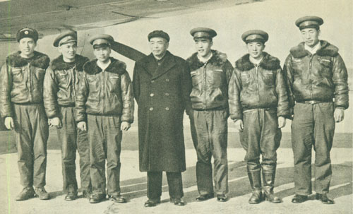 261.彭德怀1958.12在国务院副总理任上到全国各地调查研究,与飞机驾驶人员合影。