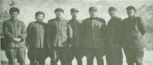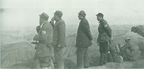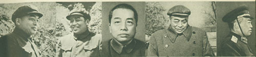 15.彭德怀1936年和长征到达陕北后的红军部分将领合影。左起:左权、彭德怀、聂荣臻、陈赓、孙毅、聂鹤亭。