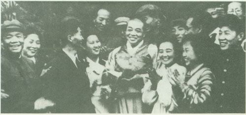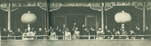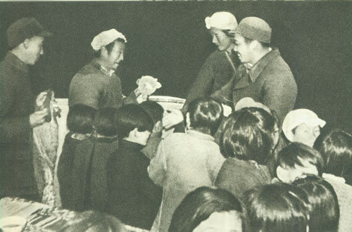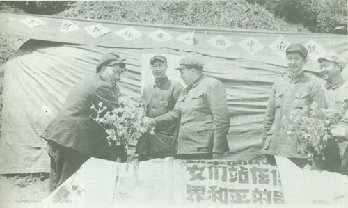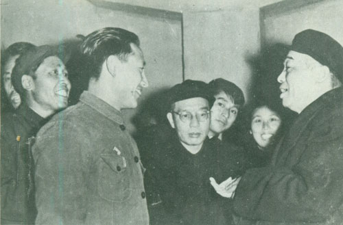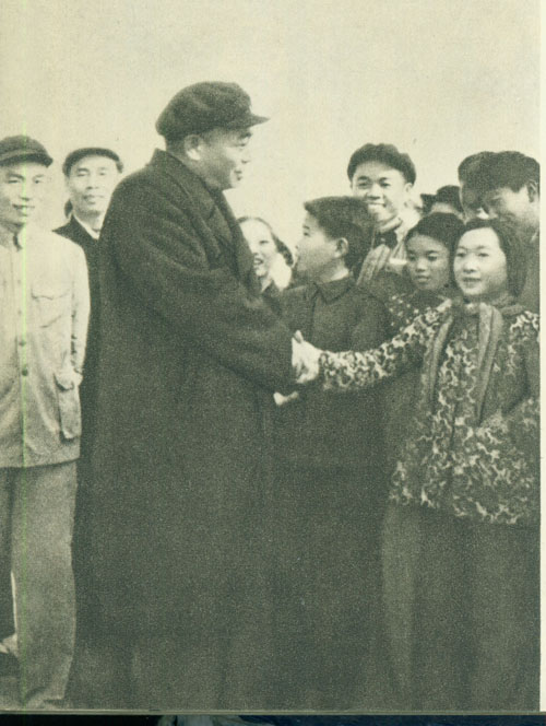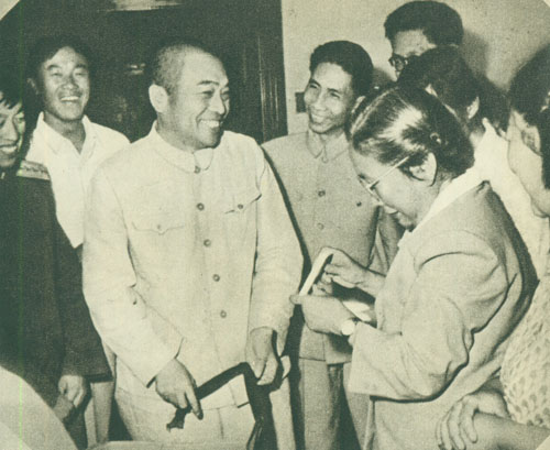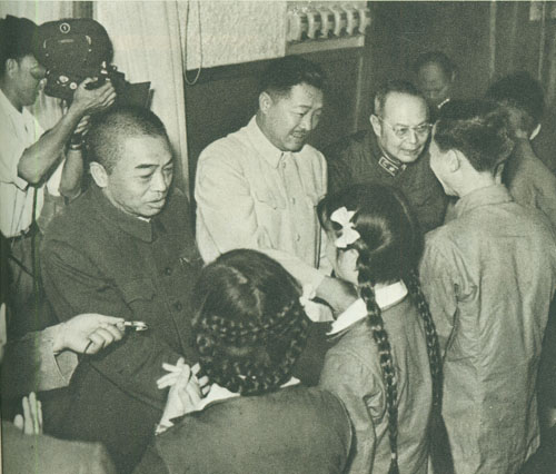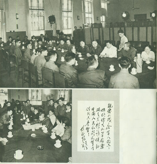 240.彭德怀1958.6和贺龙、叶剑英、萧华等接见四川省残废军人教养院课余演出队成员并为他们题词。