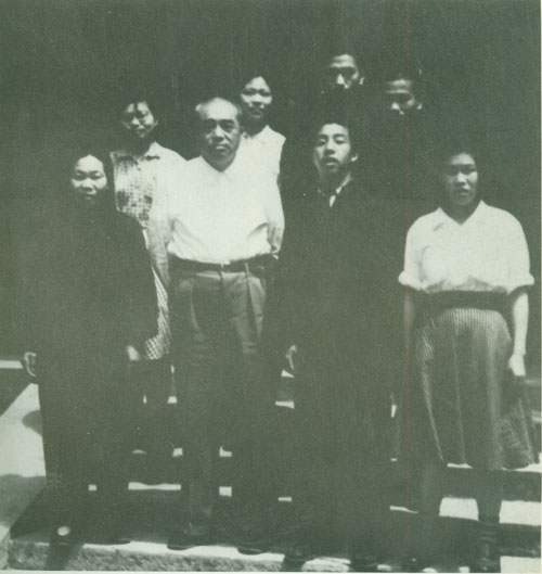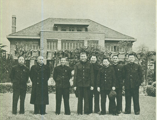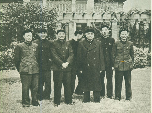 286.彭德怀1959年春,在中央举行的上海会议期间,与陈云和身边的工作人员在住处合影。