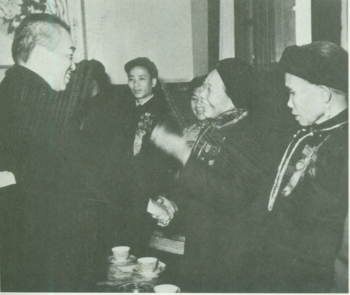 255.彭德怀1958.12.5接见参加全国妇女建没社会主义积极分于代表会议的红军烈属、部队代表、少数民族代表。