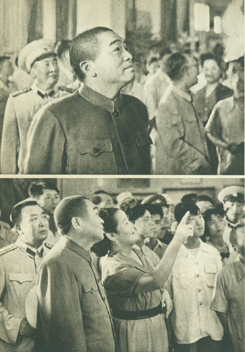 221.彭德怀1957.8.1参观为庆祝中国人民解放军建军三十周年,中国人民解放军总政治部、中华人民共和国文化部和中国美术家协会联合举办建军三十周年纪念美术展览。手指者为史良,后立者为谭政。