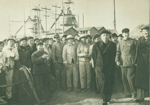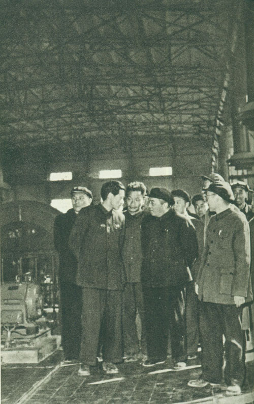 258.彭德怀1958.12视察安徽省钢铁厂,与工人交谈。
