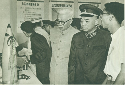 268.彭德怀1958年参观我军军工生产和技术革新成果展览。左为林伯渠同志。