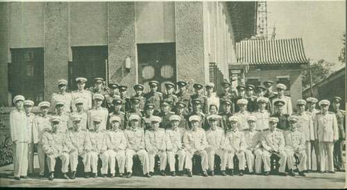 253.彭德怀1958.12.1在国防部大楼接见了出席第二次全国青年社会主义建设积极分子大会的三百多名军队代表。并和其中的十一位炊事员合影。