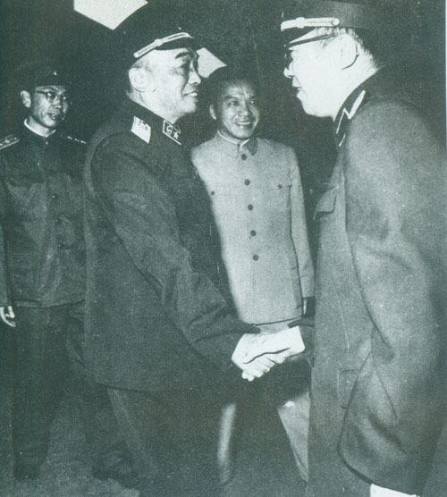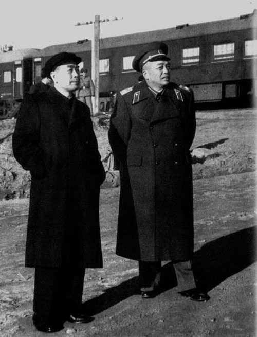 280.彭德怀1959.6.9率领的中国军事友好代表团结束了欧洲七国之行后,又访问了蒙古人民共和国,6.13.回到北京,在车站受到总参谋长黄克诚大将的热烈欢迎。
