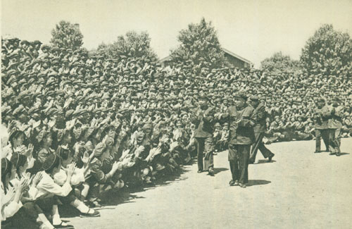 65.彭德怀1942年在一二九师举行的运动大会上检阅队伍