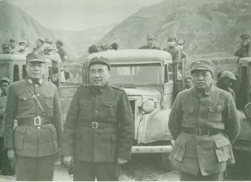 251.彭德怀1958.11在黄河三门峡左岸眺望工程进展情况