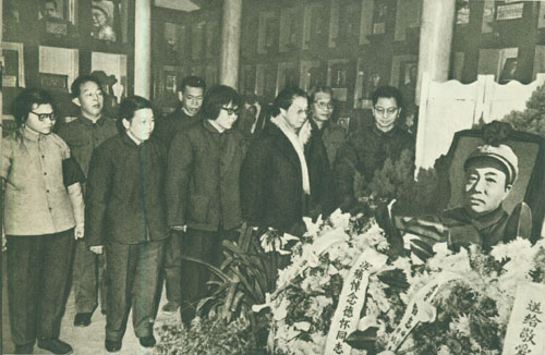 295.彭德怀和陶铸的追悼大会1978.12.24在北京人民大会堂举行。追悼会后,彭德怀的骨灰移往八宝山革命公墓骨灰堂安放。彭总的夫人浦安修及侄儿、侄女们哀痛地向彭总的骨灰告别。