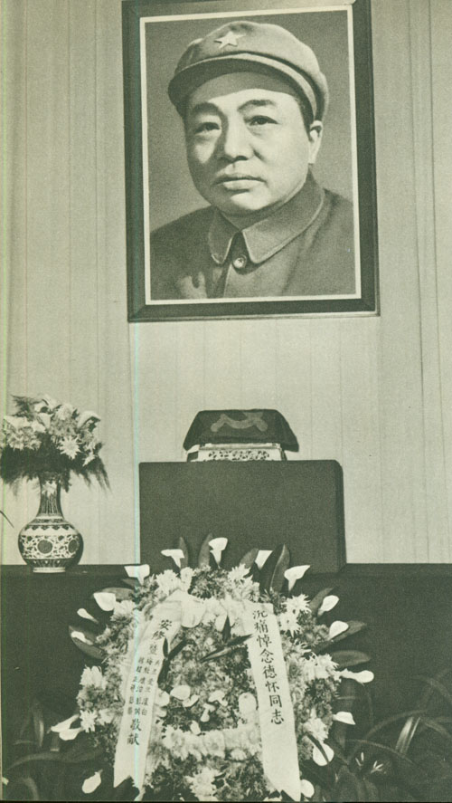 294.彭德怀和陶铸的追悼大会1978.12.24在北京人民大会堂举行。彭德怀夫人浦安修率亲属敬献的花圈。