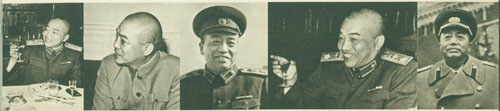 285.彭德怀1959年春,在中央举行的上海会议期间,与陈云和前来看望他们的同志在住处合影。左起:萧华、彭德怀、陈云、萧劲光、杨成武,刘亚楼、杨勇、王尚荣。