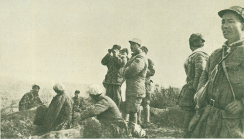 54.彭德怀1940年百团大战期间,在武乡县关家垴前线的炮团哨所指挥作战。