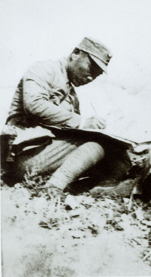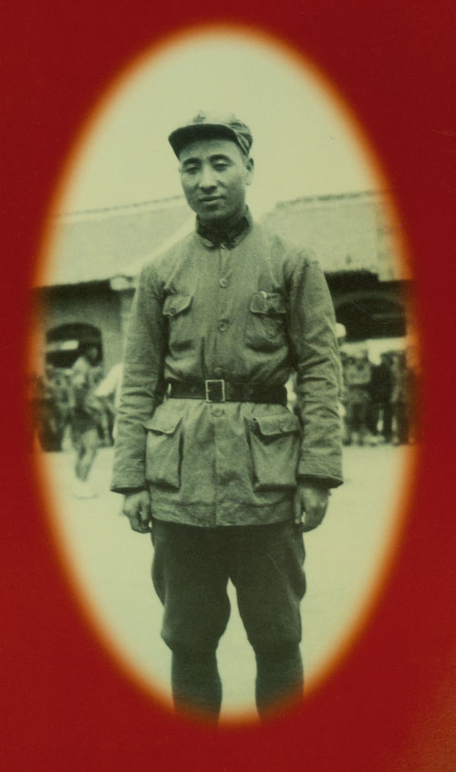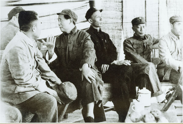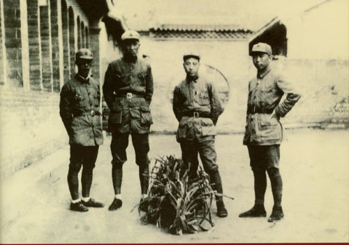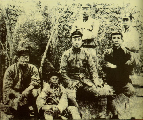 14.林彪1929年春任红军第一纵队司令员,翌年6月任红四军军长。图为林彪(左三)与部分红军干部合影。