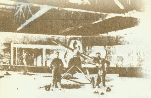 16.林彪1932.4和聂荣臻(右)在漳州战役中缴获的国民党飞机前留影。