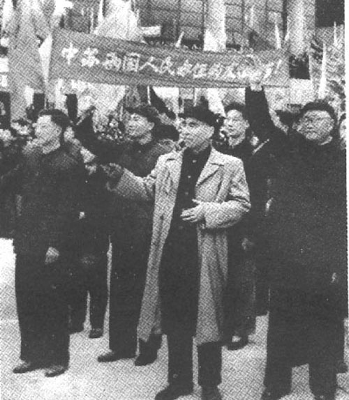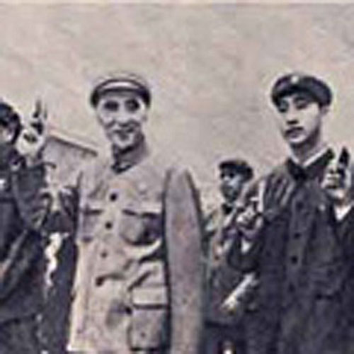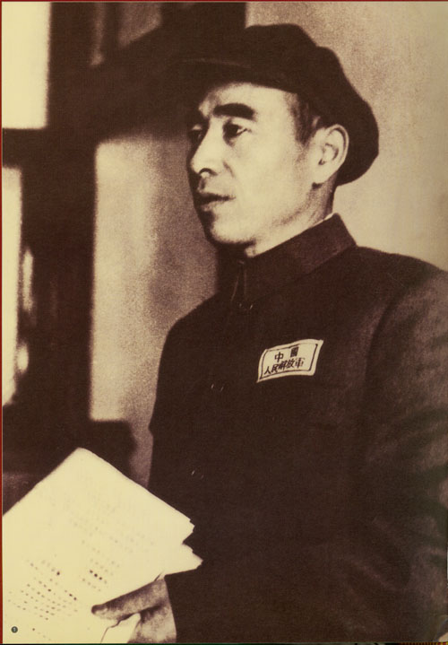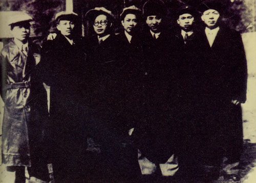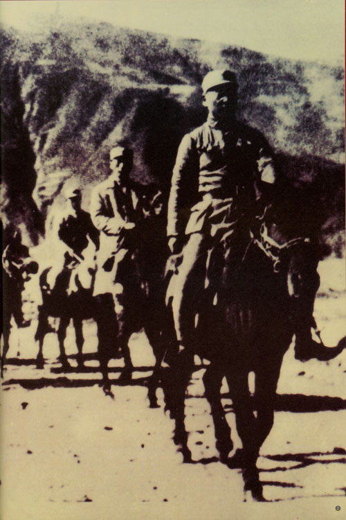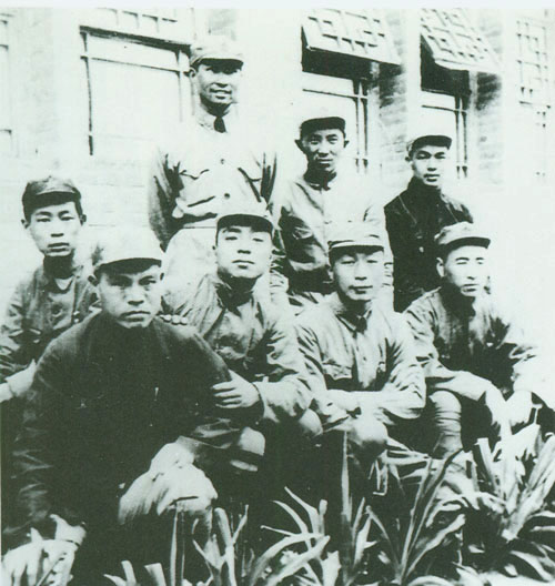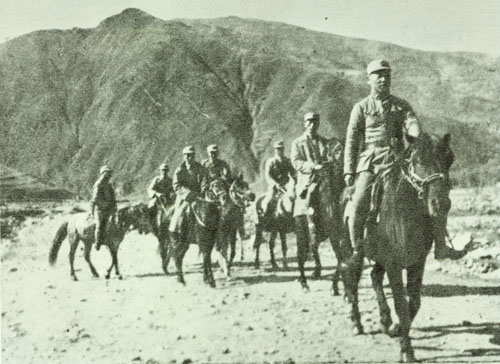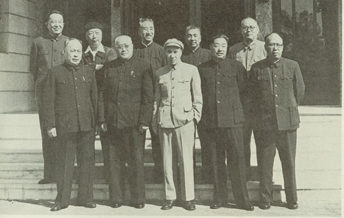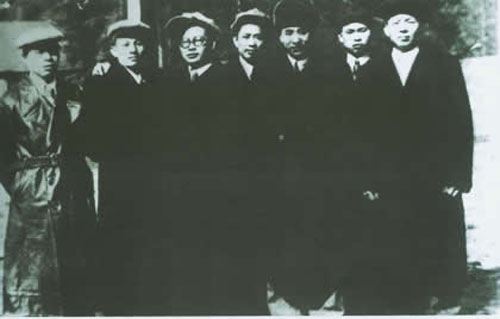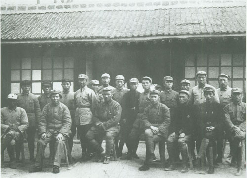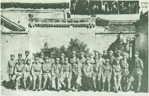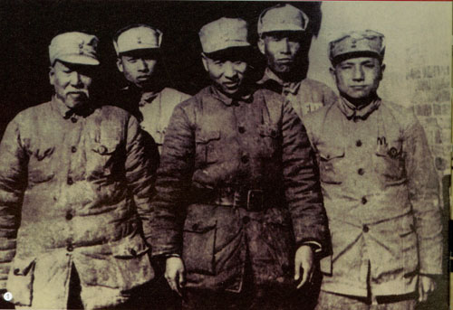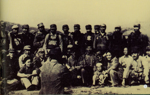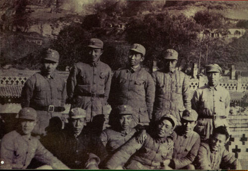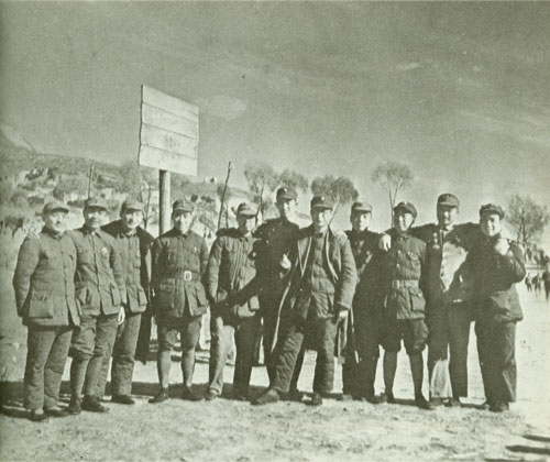 169.林彪1937年春与红一军团领导在甘肃宫和镇同民主人士合影。右一为红一军团政治委员聂荣臻、右二为军团长林彪、右四为参谋长左权、右六为政治部主任邓小平。