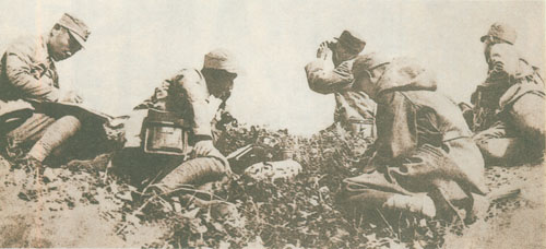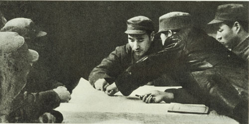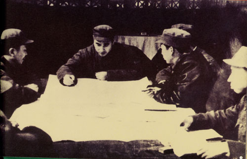 69.林彪1948.10任东北野战军司令员时与政治委员罗荣桓、参谋长刘亚楼在锦州前线指挥作战。