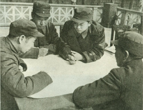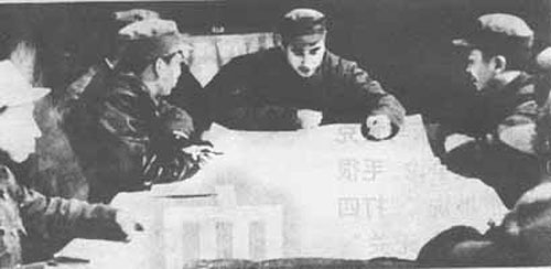 57.林彪1946.3与彭真、刘亚楼、谭政在部署四平战役。