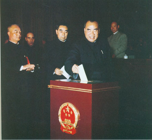 85.林彪1959.4与朱德、周恩来、彭真在第二届全国人大第一次会议投票。