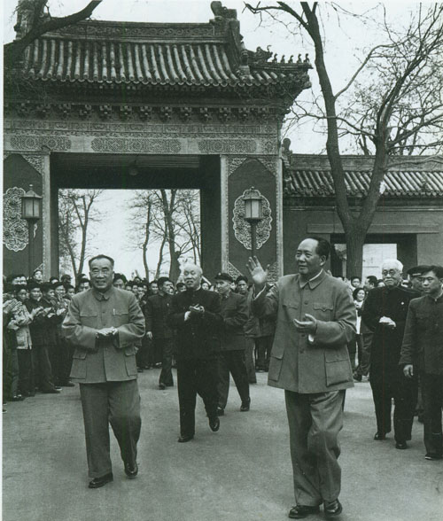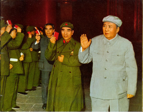 159.林彪1971.5.1与毛泽东、周恩来登上天安门城楼出席五一欢庆晚会彩照。