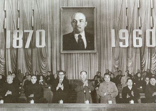 189.林彪1960.3.30在第二届全国人民代表大会第二次会议主席台。左起:毛泽东、刘少奇、宋庆龄、董必武、周恩来、陈云、林彪、邓小平。