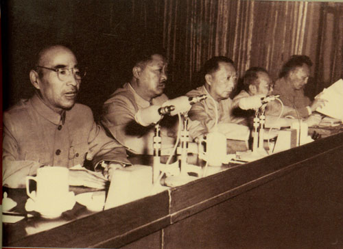 168.林彪1958.5出席军委召开的扩大会议。左起:聂荣臻、林彪、叶剑英、彭德怀、贺龙、罗荣桓。