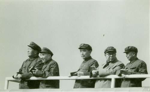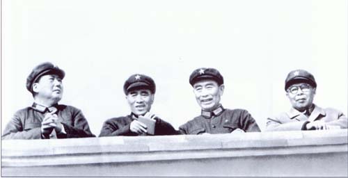 109.林彪1966.9.15与毛泽东、刘少奇、董必武在天安门城楼。