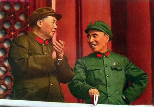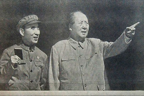 122.林彪1966.11.10与毛泽东在天安门城楼合影
