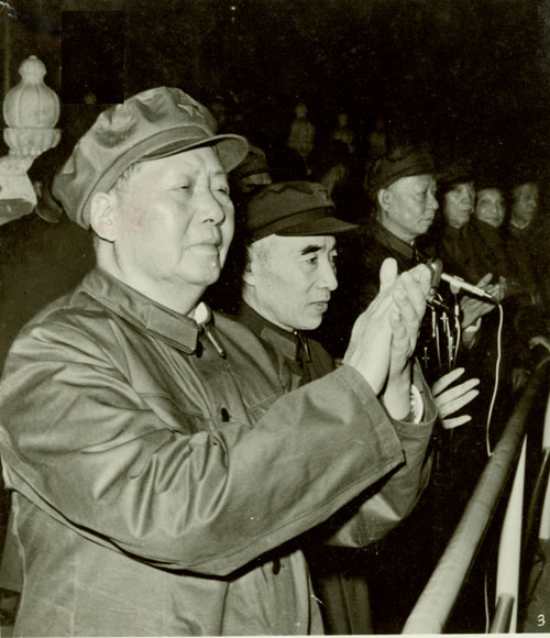 118.林彪1966.11.10与毛泽东、周恩来等在天安门城楼检阅。
