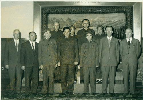 101.林彪1965.5与周恩来、邓小平、贺龙、聂荣臻等中央领导接见参加第一、二次核试验人员并合影。