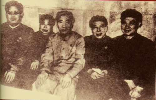 44.林彪1938年在延安的合影。后排左起:林彪、罗瑞卿、郭述申,前排左起二李维汉、左三彭真。
