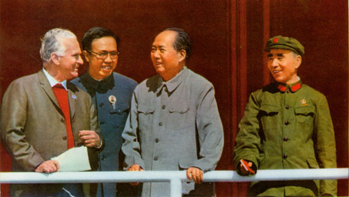 148.林彪1970.10.1和毛泽东、埃德加·斯诺在天安门城楼彩照。
