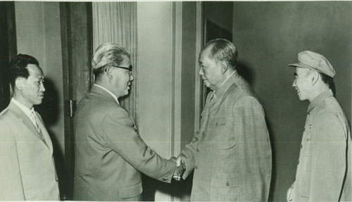 192.林彪1958.8.3出席毛泽东与来访的苏共中央第一书记尼基塔·赫鲁晓夫在联合公报上签字仪式。