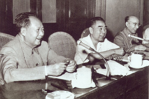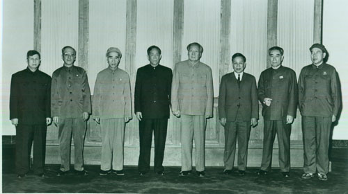 174.林彪1958.11-12出席毛泽东主持的中共八届六中全会,右起: 邓小平、陈云、周恩来、毛泽东、刘少奇、朱德、林彪。