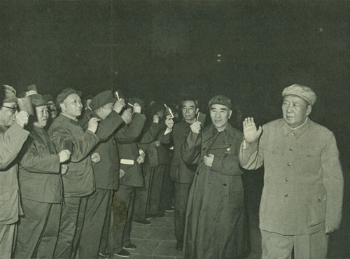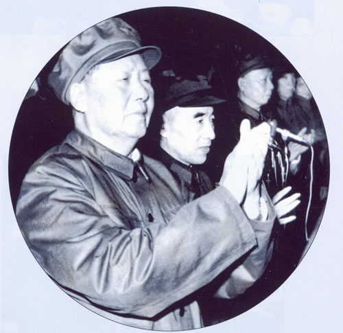 108.林彪1966.8.31在天安门广场与毛泽东、周恩来、江青、康生等第二次接见来自北京和全国各地的50多万红卫兵和学校师生。