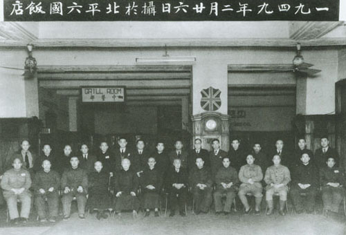 171.林彪1949.2.26在北平六国饭店与“上海和平代表团”成员合影。前排左起:郭宗汾、董必武、邓宝珊、江庸、邵力子、章士钊、颜惠庆、叶剑英、林彪、傅作义、聂荣臻、薄一波、徐冰。