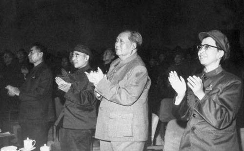 183.林彪1967.4.24与毛泽东、周恩来、江青在北京观看芭蕾舞剧《白毛女》。