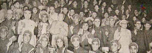 177.林彪1967.6.16与毛泽东、周恩来、江青观看上海市京剧院演出的革命现代京剧《智取威虎山》。