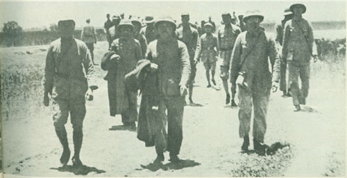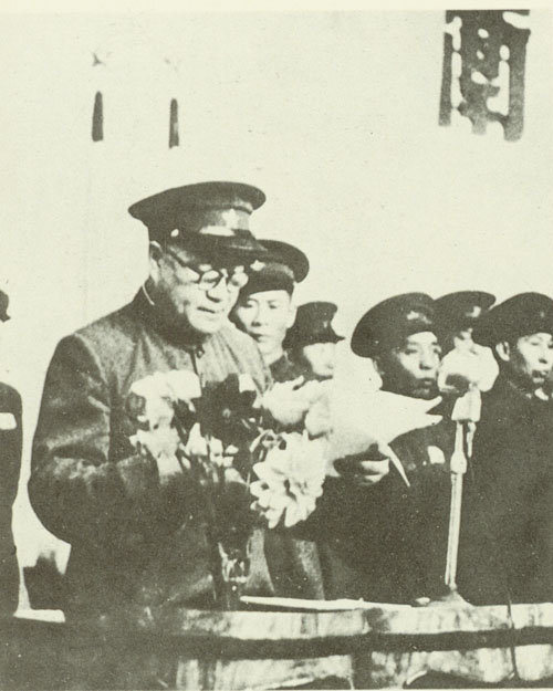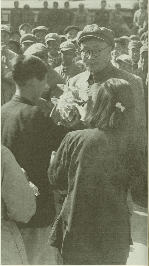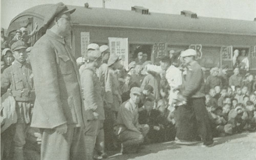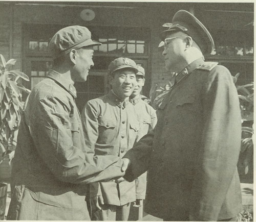 64.刘伯承1945.10与邓小平政委欢送在邯郸战役中被我军生俘的第十一战区副司令长官马法五(穿长衫者)回新乡。
