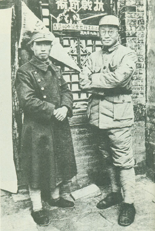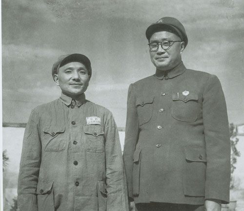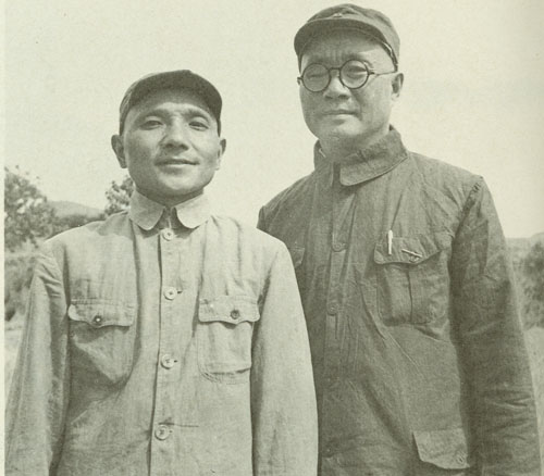 31.刘伯承1938年任八路军一二九师师长时,与政治委员邓小平合影。