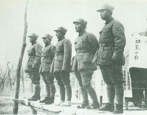 46.刘伯承1940年春在山西省武乡县王家峪八路军总部合影。左起:罗瑞卿、聂荣臻、朱德、刘伯承、邓小平、林彪。