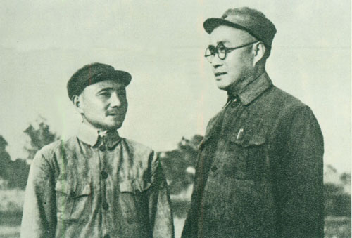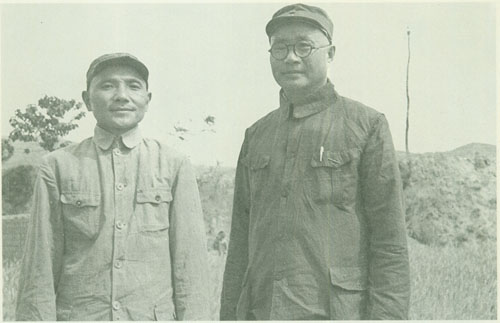 28.刘伯承1938年初时任八路军一二九师师长,与政治委员邓小平在一起。